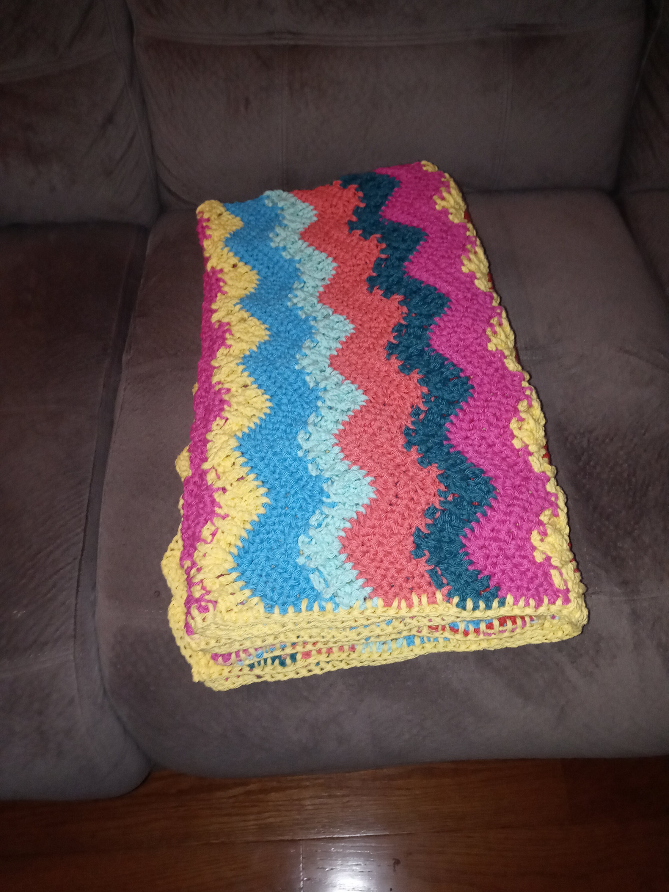 A crochet baby blanket with multiple colors? And it's cotton? Cute!